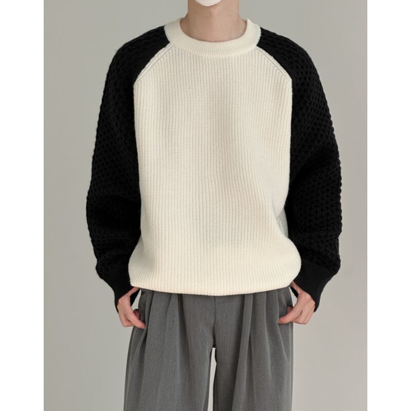 bicolor knit sweater raglan sleeve crew neck mr0157