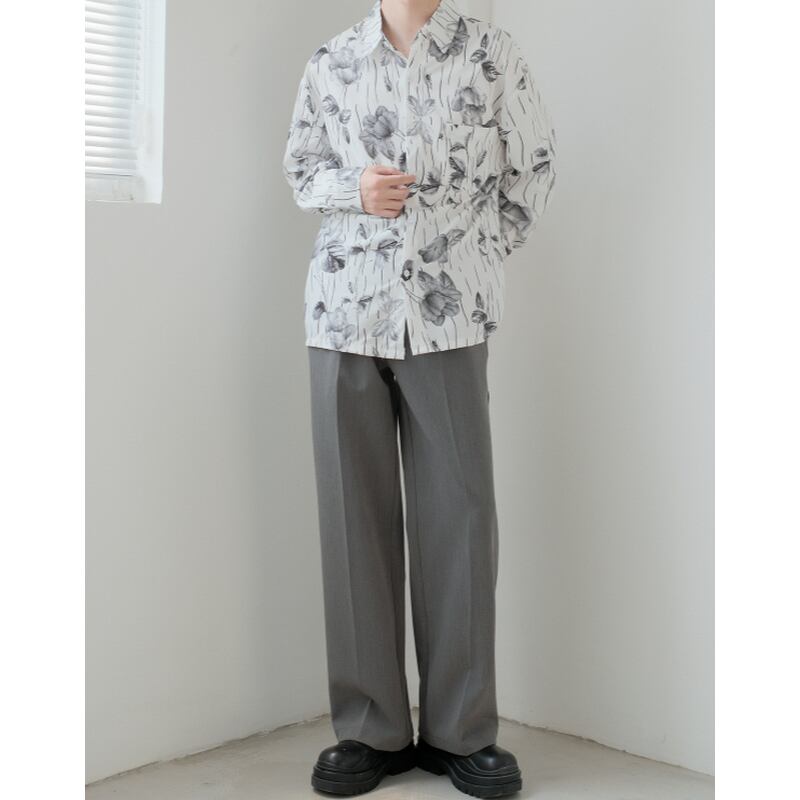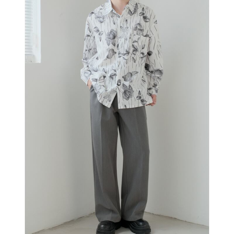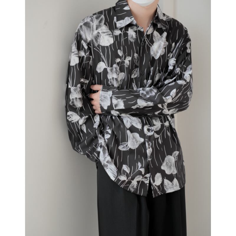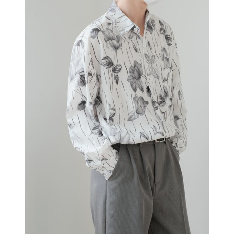 abstract pattern button front long sleeve shirt straight silhouette mr0161