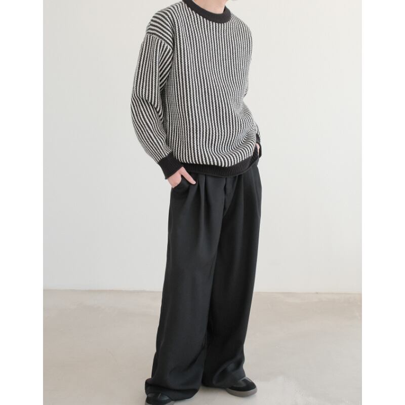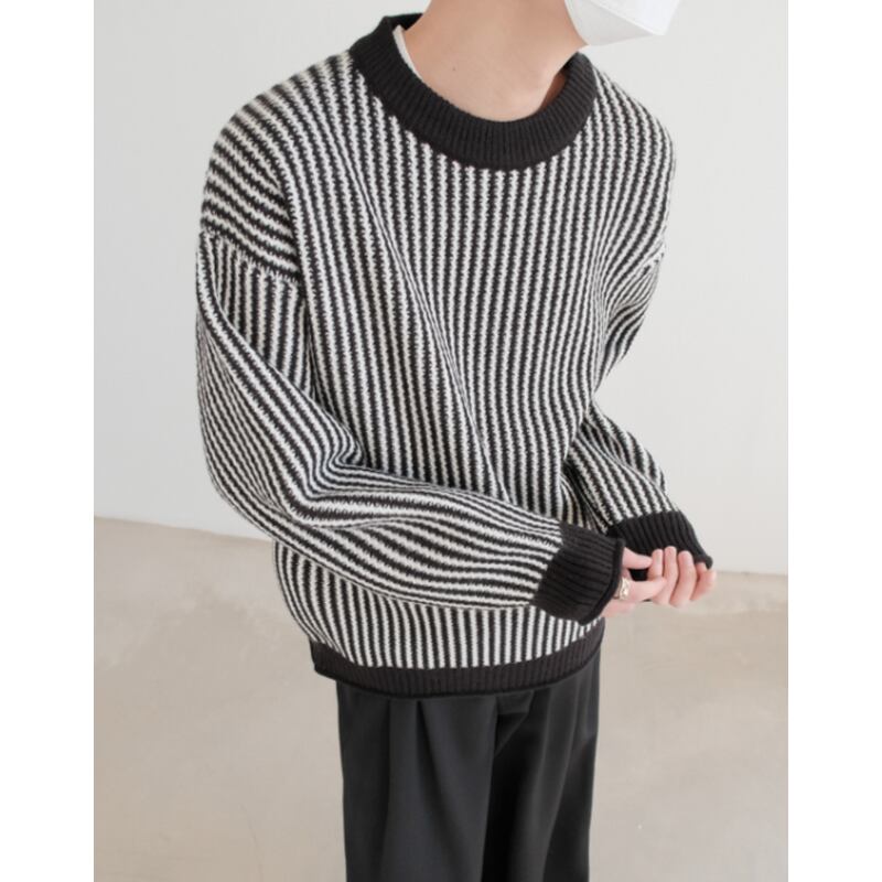 vertical rib long sleeve crew neck knit sweater mr0167