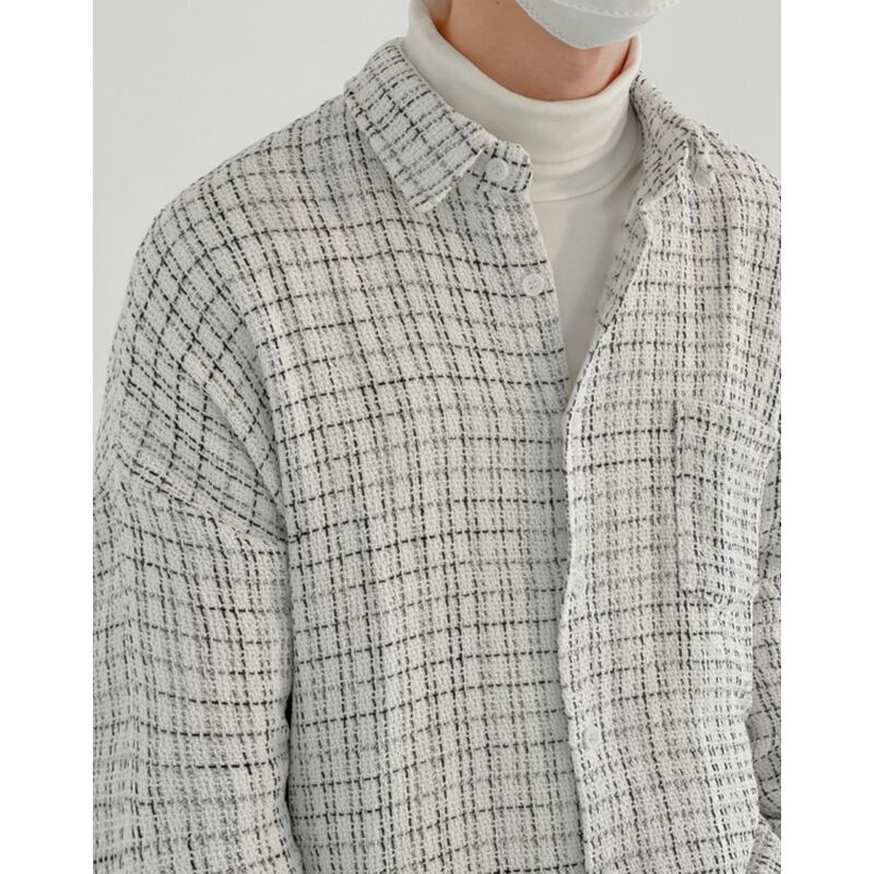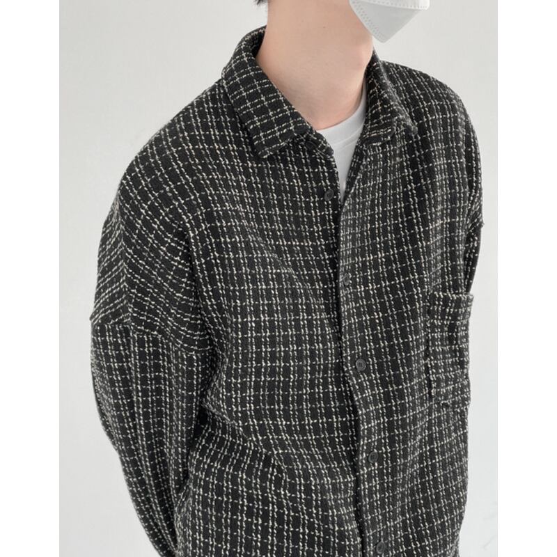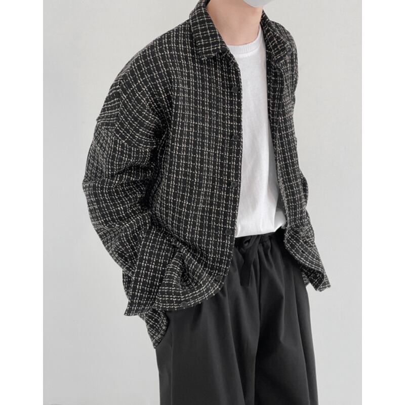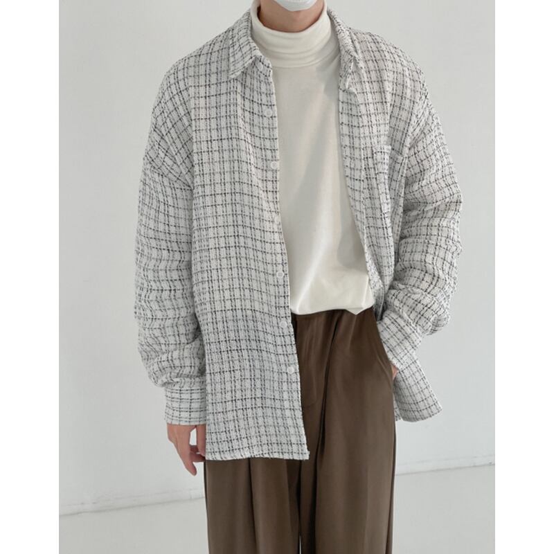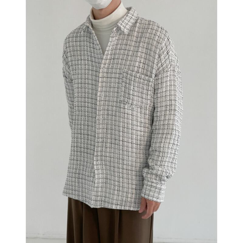 tweed check pattern oversized button-down shirt mr0177