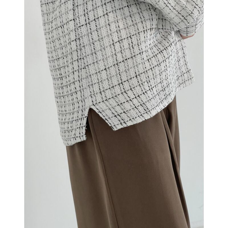 ゆったりとしたシルエットと、上品なツイードチェック柄が魅力のオーバーサイズシャツ。カジュアルな着こなしにも、きれいめなスタイルにも合わせやすく、着回し力の高さがポイントです。一枚羽織るだけで、こなれた雰囲気を演出できます。様々なシーンで活躍してくれる、ワードローブのマストアイテムです。