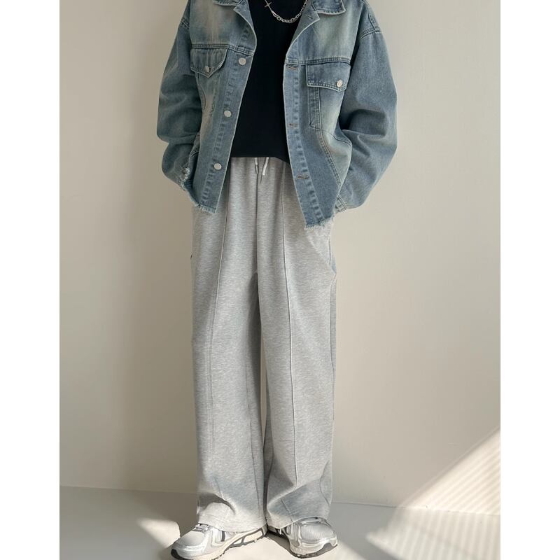 着心地抜群のスウェットパンツは、ワイドレッグとドローストリングデザインで快適な履き心地を実現。センタープレスが施されているため、カジュアルながらも洗練された印象を与え、様々なスタイルに合わせやすい万能アイテムです。休日のリラックススタイルから、ちょっとしたお出かけまで幅広く活躍します。