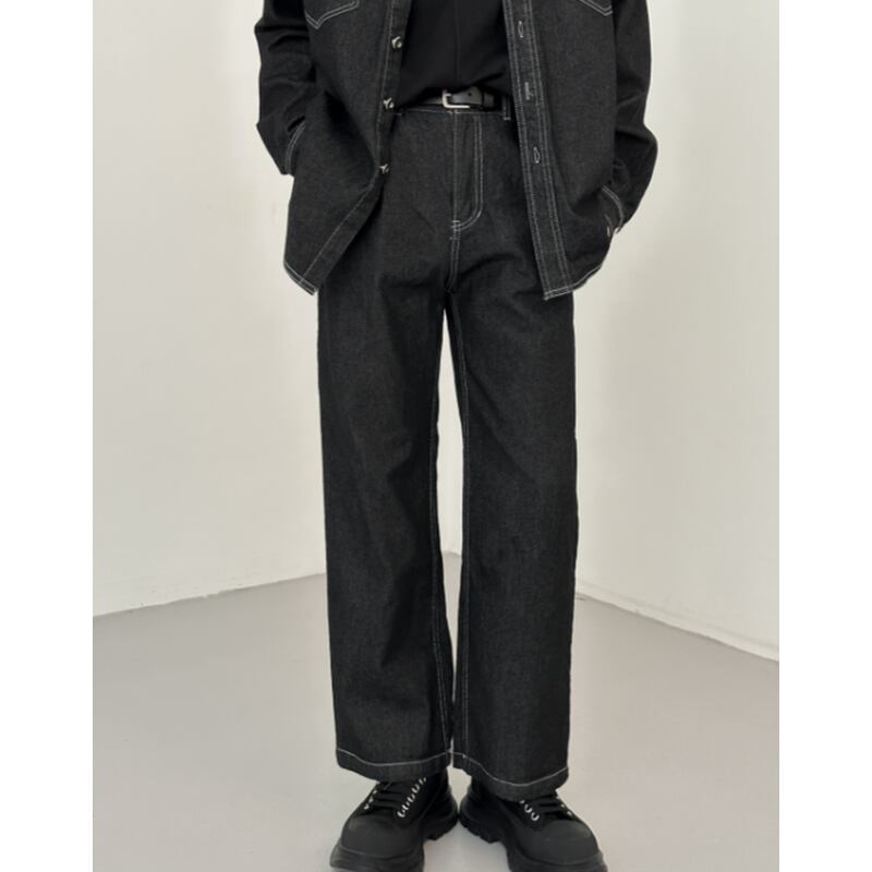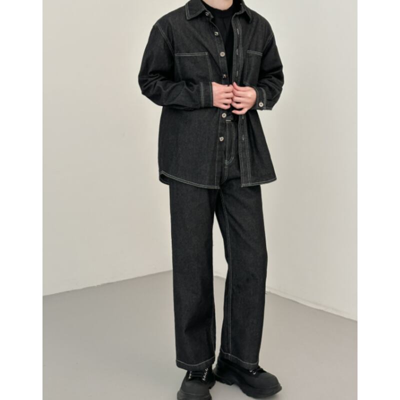 セットアップとして着用できるデニムシャツジャケットとワイドパンツの組み合わせ。カジュアルながらも洗練された印象を与え、様々なシーンで活躍します。ジャケットはボタンダウンタイプで、着脱も容易です。パンツはワイドシルエットで、リラックス感のある着心地ながら、スタイリッシュなシルエットを演出します。普段使いはもちろん、ちょっとしたお出かけにも最適です。