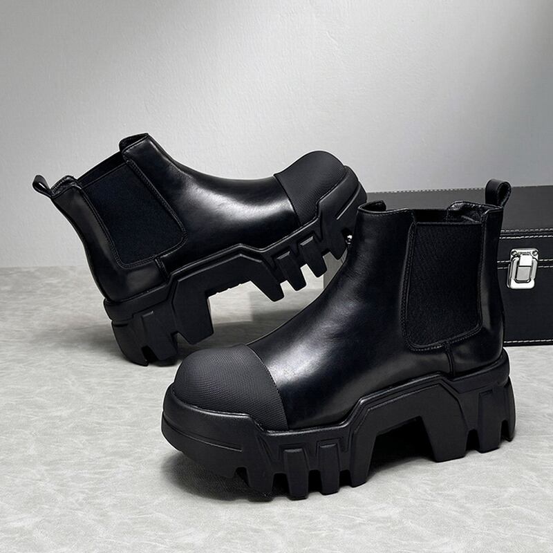 個性を際立たせる、このデザイン性の高いアンクルブーツ。存在感のある厚底ソールと、洗練されたシルエットが魅力です。普段使いはもちろん、パーティーや特別なイベントにも最適です。どんなスタイルにも合わせやすく、着こなしの幅を広げてくれます。スタイリッシュさと快適さを兼ね備えた、一足持っておきたいアイテムです。