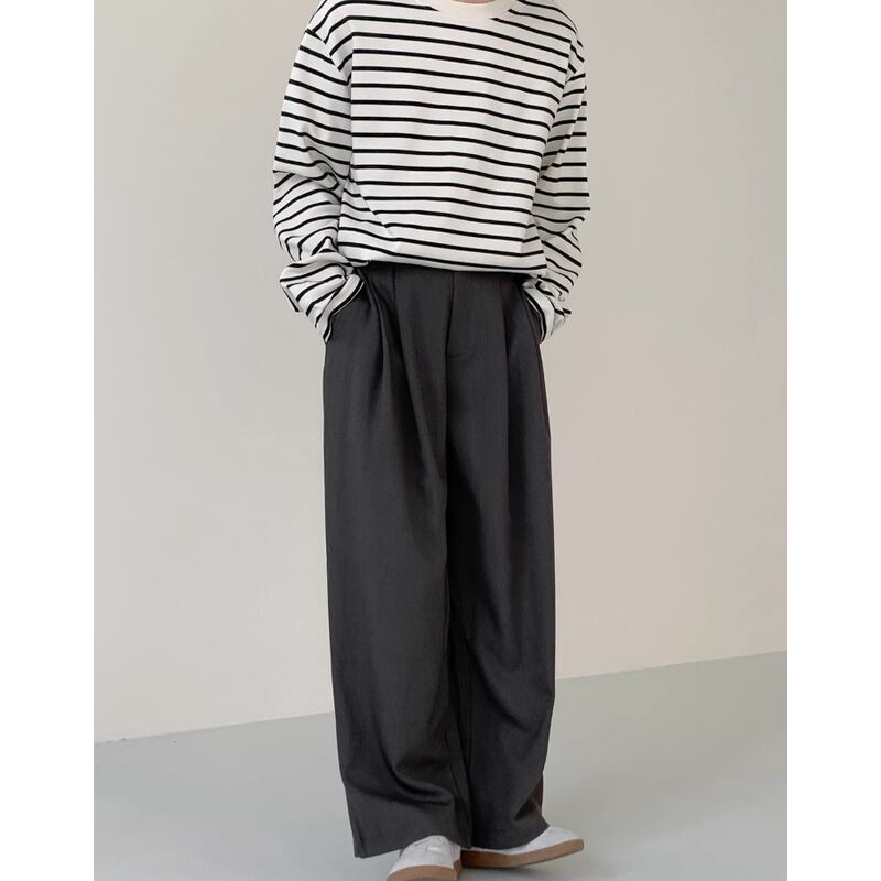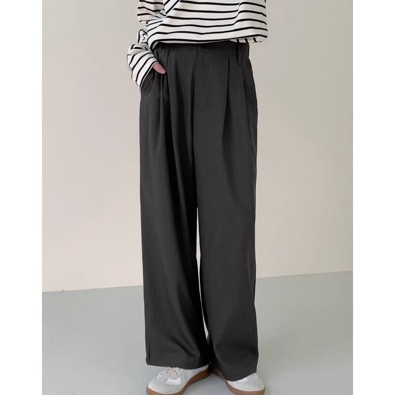 ハイウエストでゆったりとしたワイドレッグパンツ。リラックスしたシルエットが、どんなトップスとも相性抜群です。カジュアルなスタイルにも、きれいめな装いにも合わせやすく、着回し力も抜群。普段使いから特別な日のお出かけまで、幅広いシーンで活躍します。