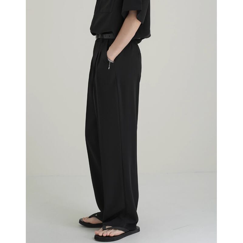 センタープレスのワイドレッグパンツで、洗練されたスタイルを演出しましょう。フルレングスのシルエットが、脚を長く美しく見せてくれます。カジュアルなトップスと合わせれば、休日のお出かけスタイルに。ジャケットを羽織れば、オフィスにも適したスマートな装いになります。様々なシーンで活躍する、着回し力の高い一品です。