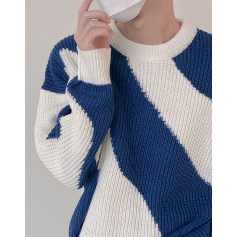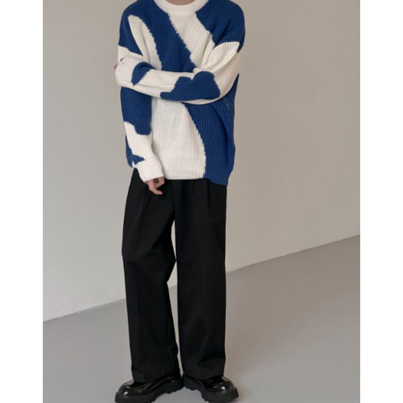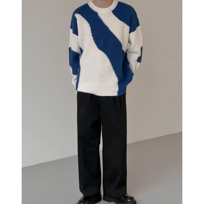 asymmetrical pattern crew neck big silhouette knit mr0137