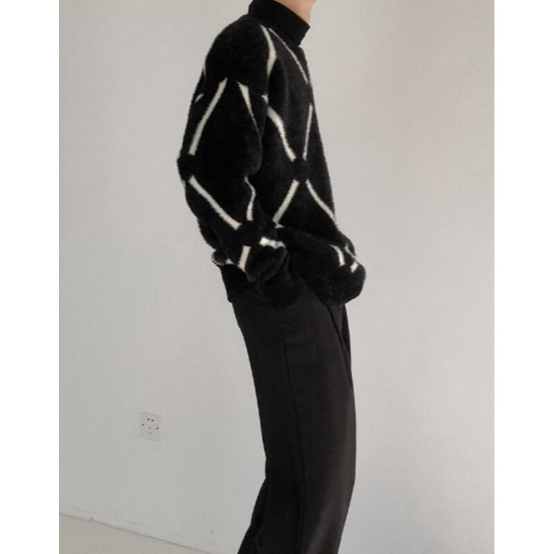 diamond pattern mohair knit sweater oversized turtleneck mr0144