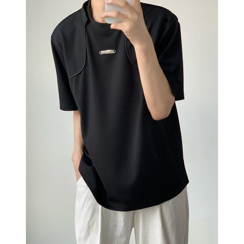シンプルながらも胸元のメタルパーツがさりげないアクセントとなり、着こなしにこなれ感をプラスします。
