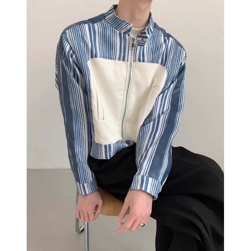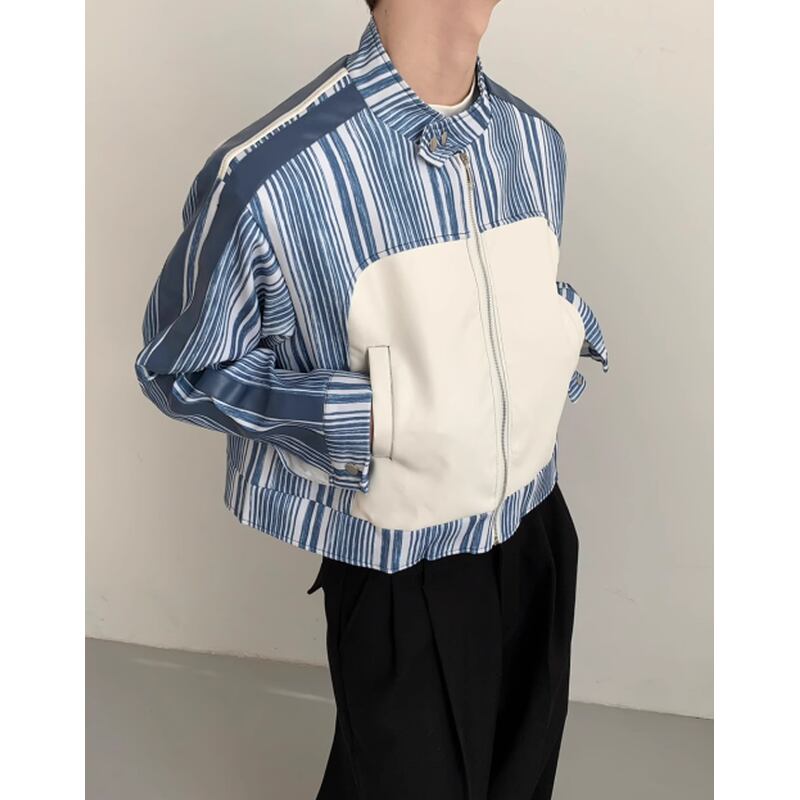 striped switch design cropped zip-up jacket mr0424