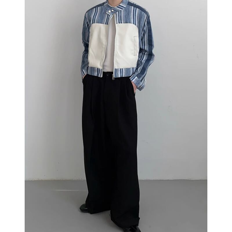 スタンドカラーのクロップドジャケットは、着こなしにアクセントを加えるアイテムです。ストライプ柄がデザインの一部として取り入れられ、シンプルながらも個性を演出します。普段使いはもちろん、ちょっとしたお出かけにもぴったり。着るだけでこなれた雰囲気を醸し出せる、おすすめのアイテムです。