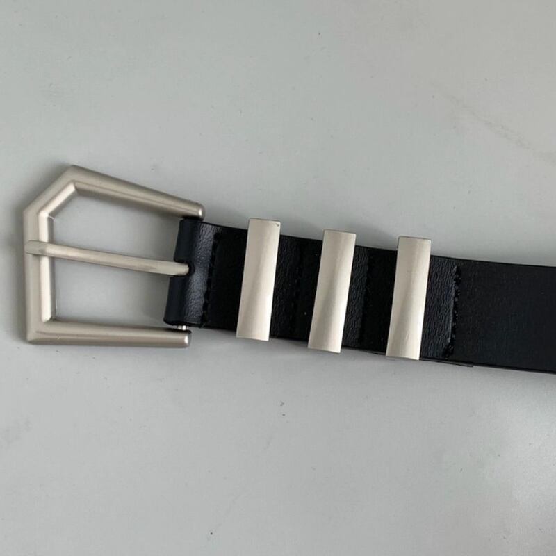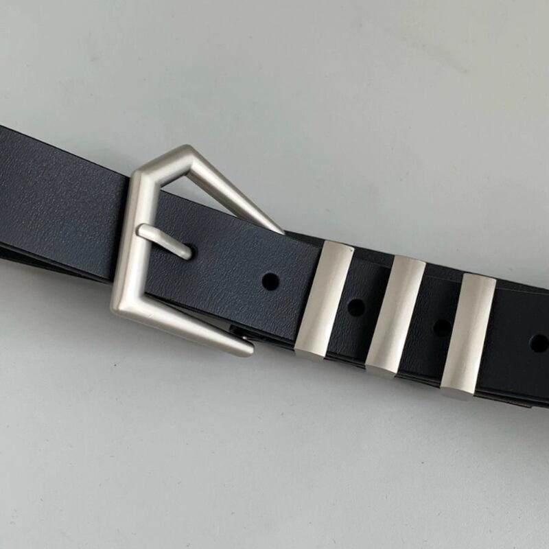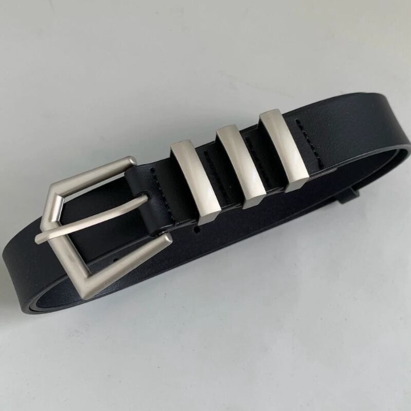 simple leather belt with geometric buckle narrow pin buckle mr0436