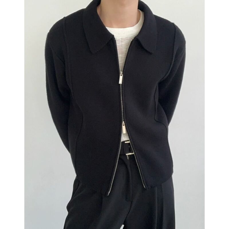ribbed knit material full zip oversized zip-up shirt jacket mr0441