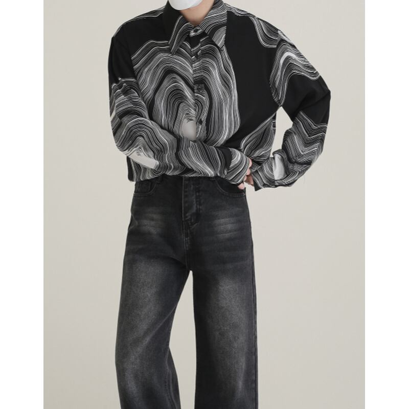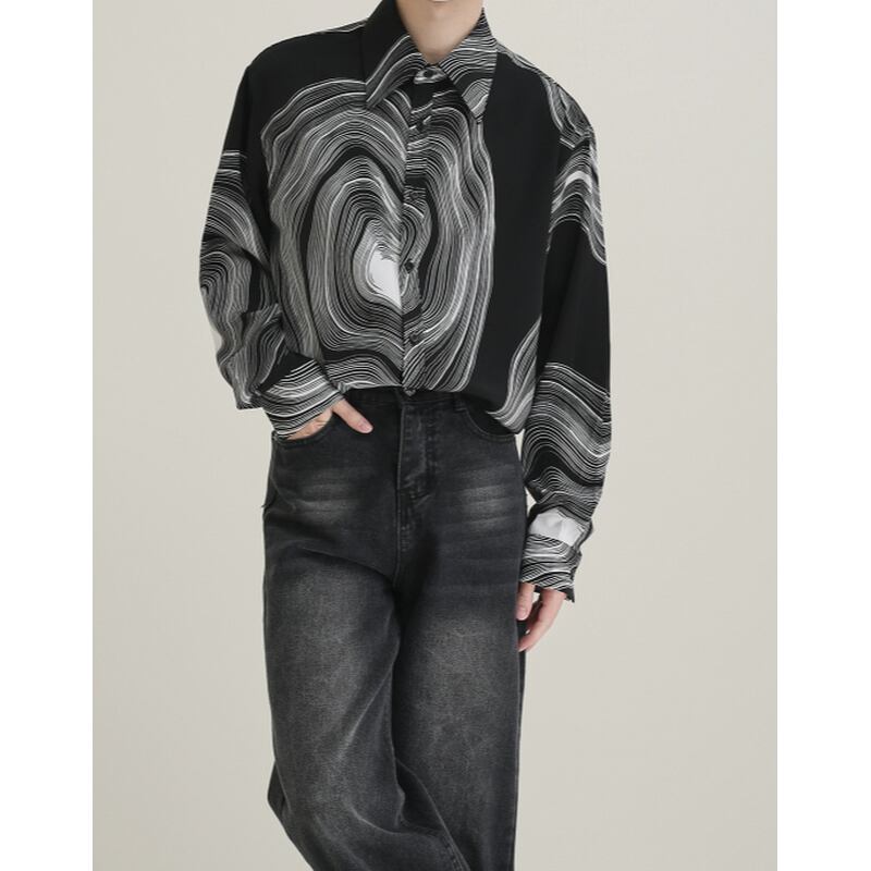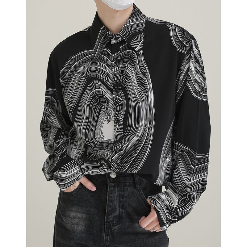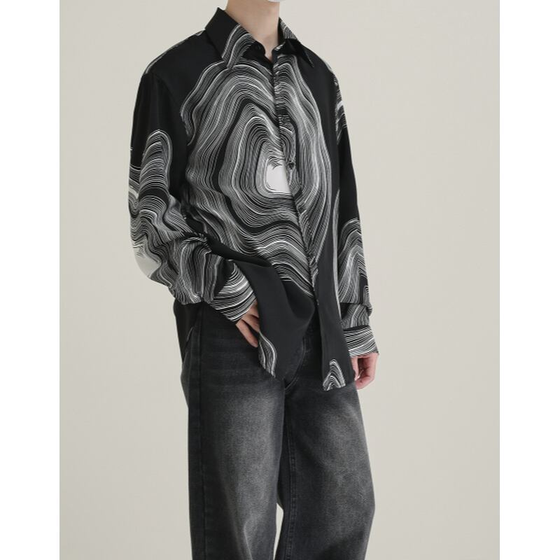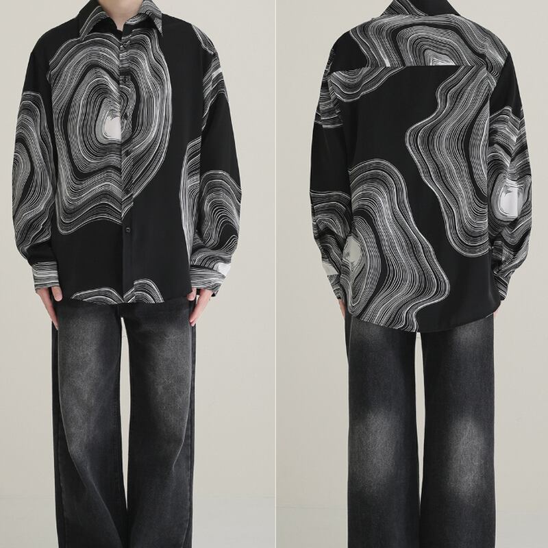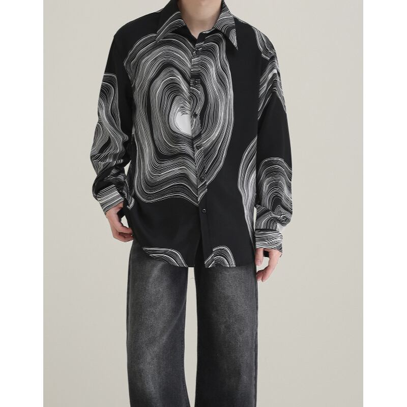 abstract pattern long sleeve shirt - wide silhouette mr0149