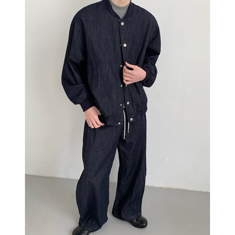 high-waisted drawstring denim wide pants mr0478