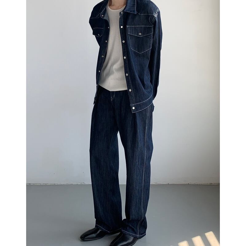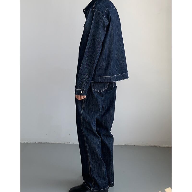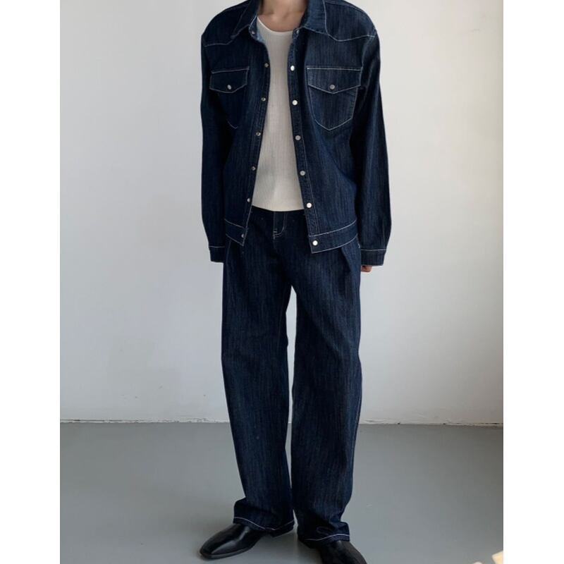 着回し力抜群のデニムシャツと裾ステッチがアクセントになった、ストレートシルエットのワイドデニムパンツ。程よくゆったりとしたシルエットで、リラックスして着こなせます。シャツはボタンを留めてシャツとして、羽織として、様々な着こなしが楽しめます。
