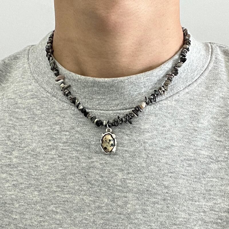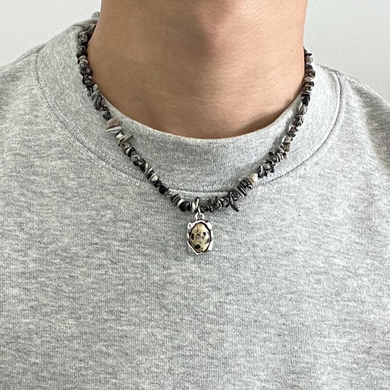 Stone beads necklace with metal charm choker mr0520