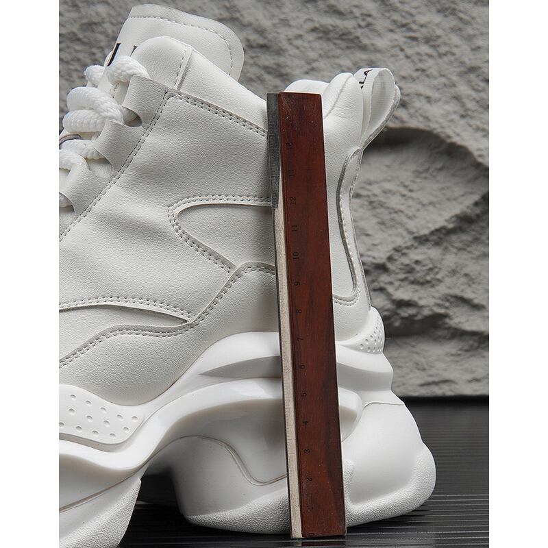 厚底のソールとハイカットのデザインが特徴的なこのスニーカーは、スタイリッシュな足元を演出します。シンプルなデザインなので、様々なファッションに合わせやすく、コーディネートの幅が広がります。普段使いはもちろん、お出かけにもぴったりです。履くだけでこなれた雰囲気を演出できる、おすすめのアイテムです。