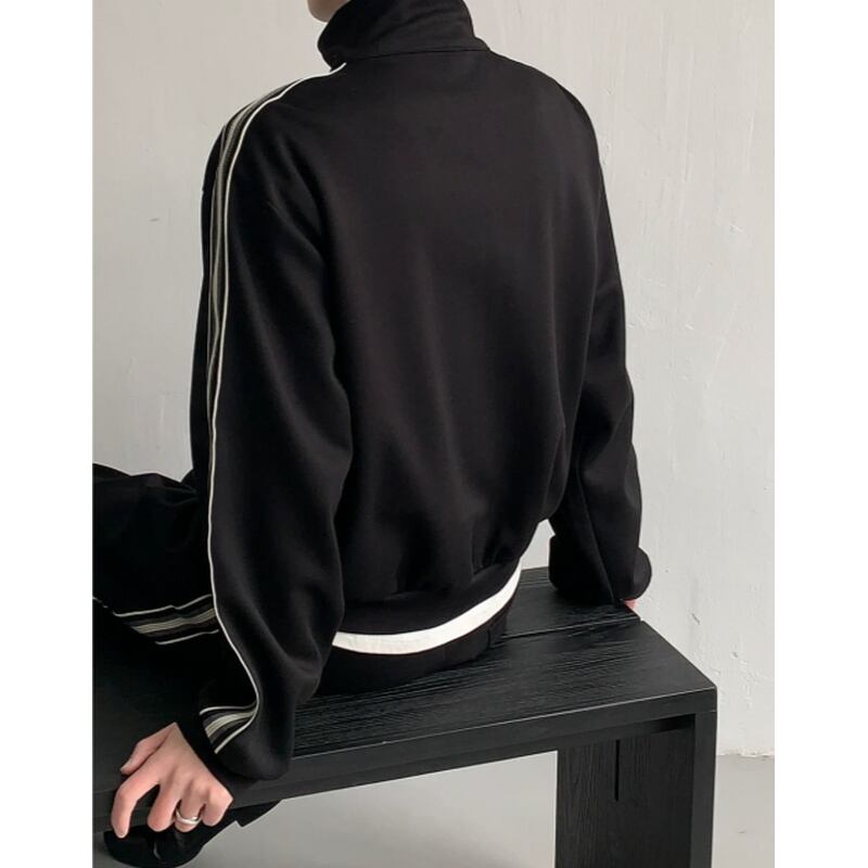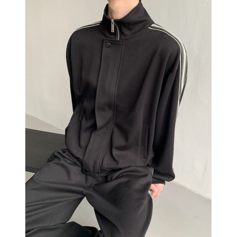 stand collar zip-up high neck track jacket & jersey pants setup mr0483