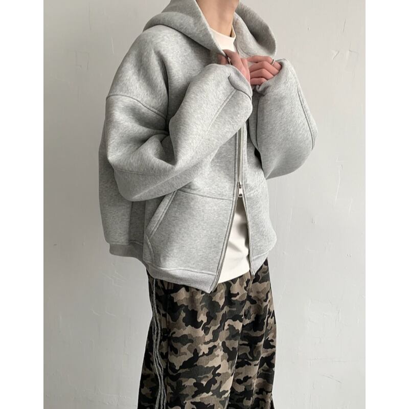 ゆったりとしたシルエットが魅力のフルジップパーカーは、ドロップショルダーデザインでこなれた雰囲気を演出します。着心地も抜群で、リラックスした時間を過ごしたい休日のカジュアルスタイルにぴったり。どんなボトムスとも合わせやすく、着回し力も高いアイテムです。一枚持っていると重宝すること間違いなしでしょう。