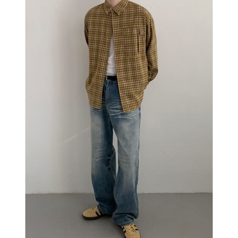 cotton check pattern oversized long sleeve shirt mr0487