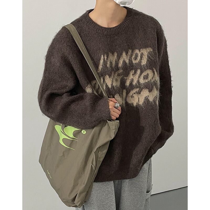 オーバーサイズシルエットとグラフィックプリントが特徴的なニットセーターです。ゆったりとした着心地で、リラックスしたスタイリングに最適です。カジュアルなスタイルから、デニムと合わせてきれいめな装いにもマッチします。一枚でコーディネートの主役になる存在感抜群のアイテムです。