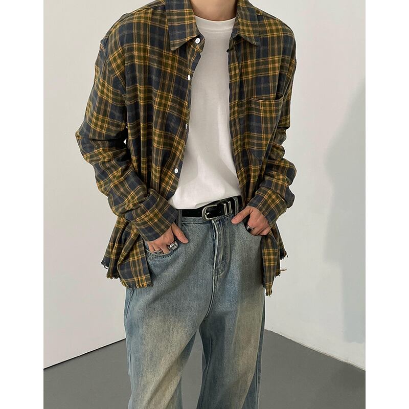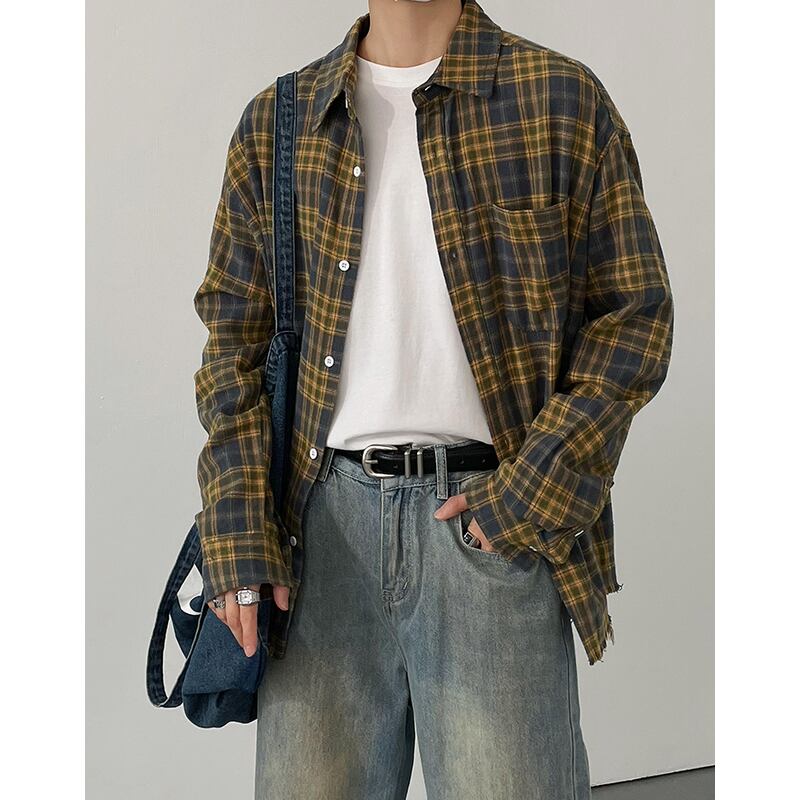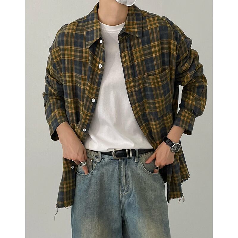 oversized check shirt long sleeve button down mr0623
