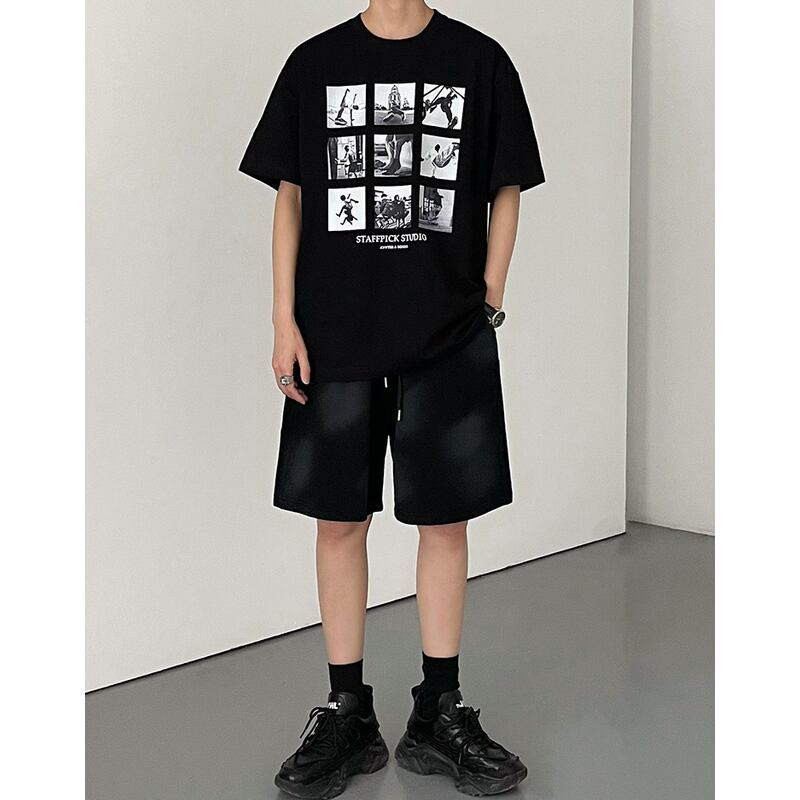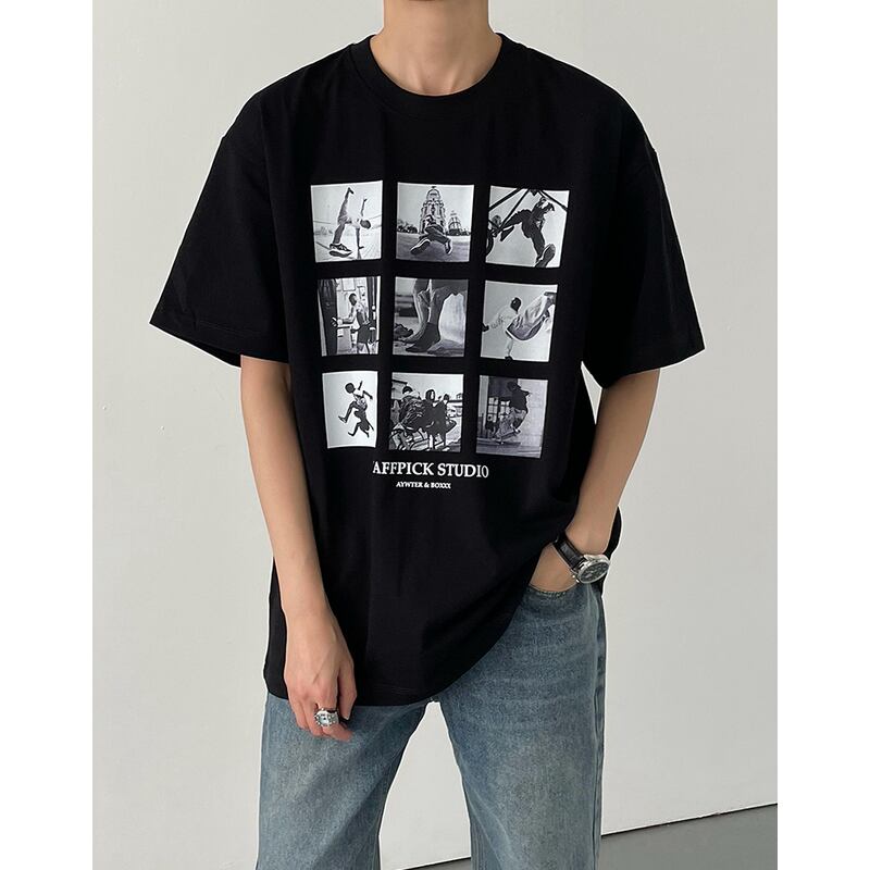 ストリートスタイルに最適な、フォトプリントTシャツ。複数の写真が配置されたデザインは、目を惹くアクセントになります。ゆったりとしたシルエットで、快適な着心地。カジュアルなボトムスと合わせて、ラフでスタイリッシュなコーディネートを楽しんでください。