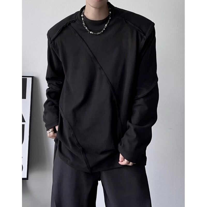 大胆な非対称デザインが特徴のロングスリーブトップ。肩周りのデザインがさりげない個性を演出。オーバーサイズシルエットで着心地も抜群。カジュアルなスタイルからきれいめスタイルまで、幅広いコーディネートにマッチします。着るだけでこなれ感をプラスできるアイテムです。