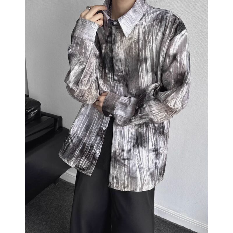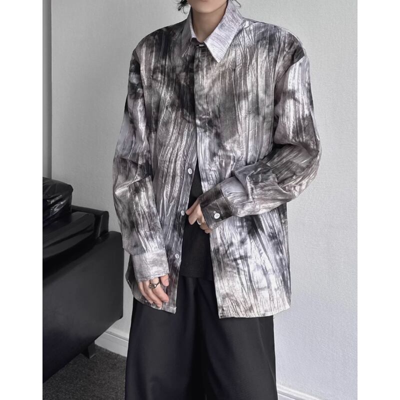 抽象的なパターンが目を惹く、オーバーサイズの長袖シャツ。ゆったりとしたシルエットと、スタイリッシュなデザインが、着るだけでこなれた雰囲気を演出します。普段使いはもちろん、ちょっとしたお出かけにも最適です。一枚で着こなしの主役になれるアイテムです。