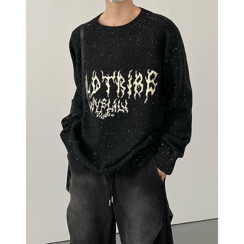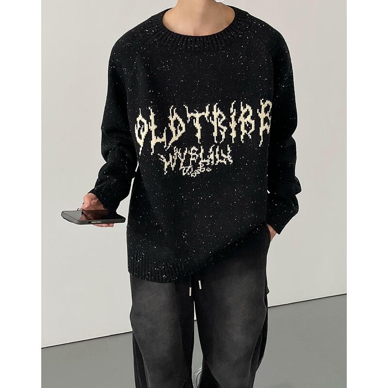 melange knit crew neck raglan sleeve oldtribe sweater mr0656