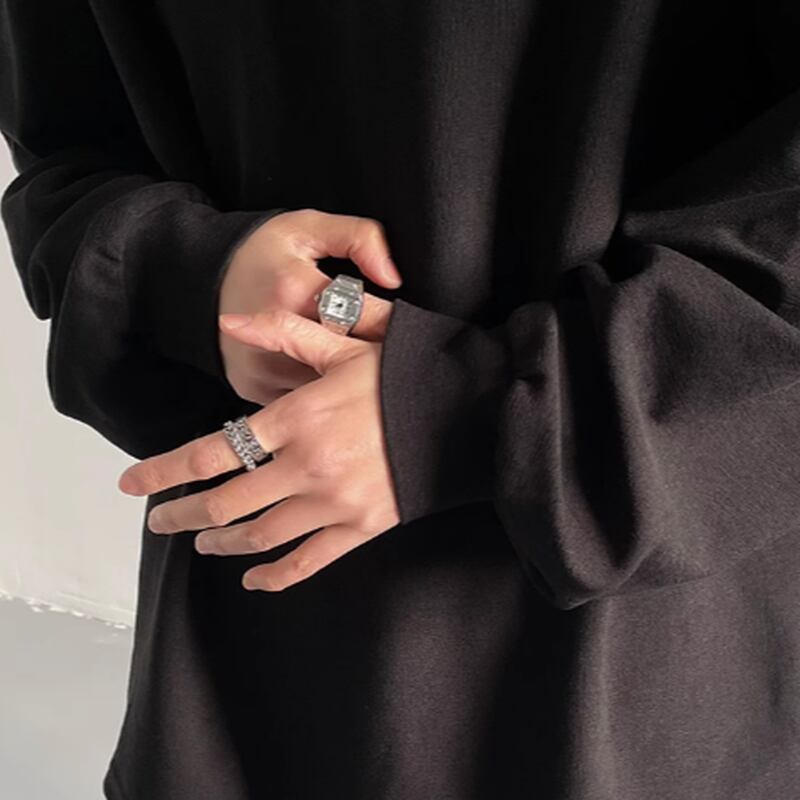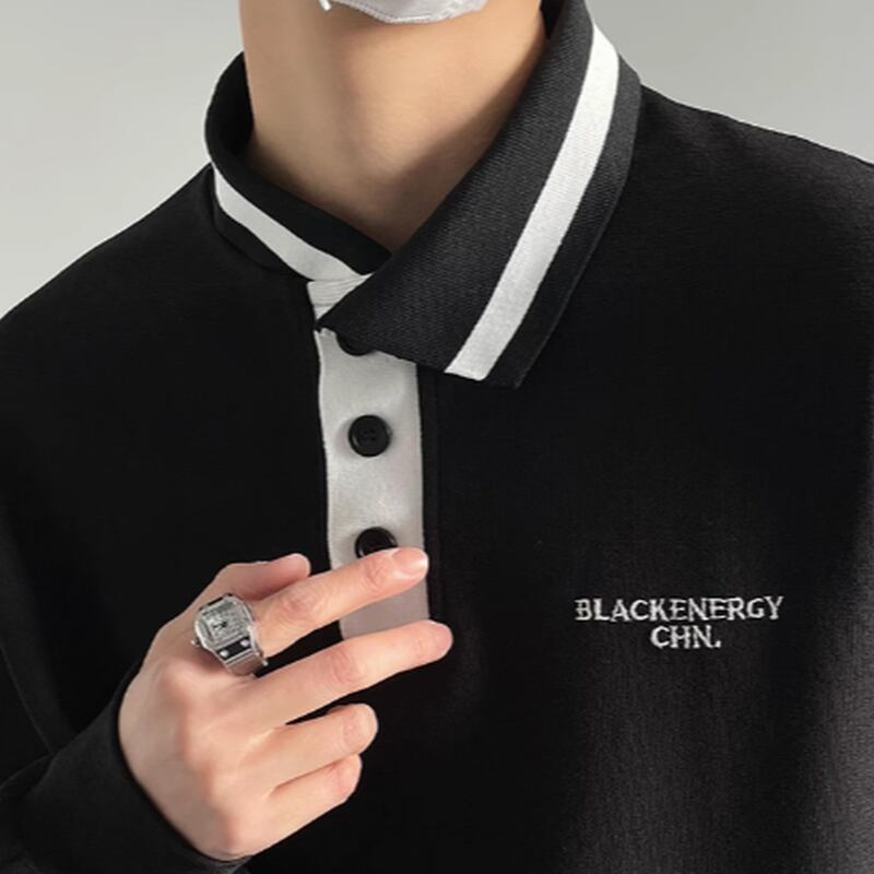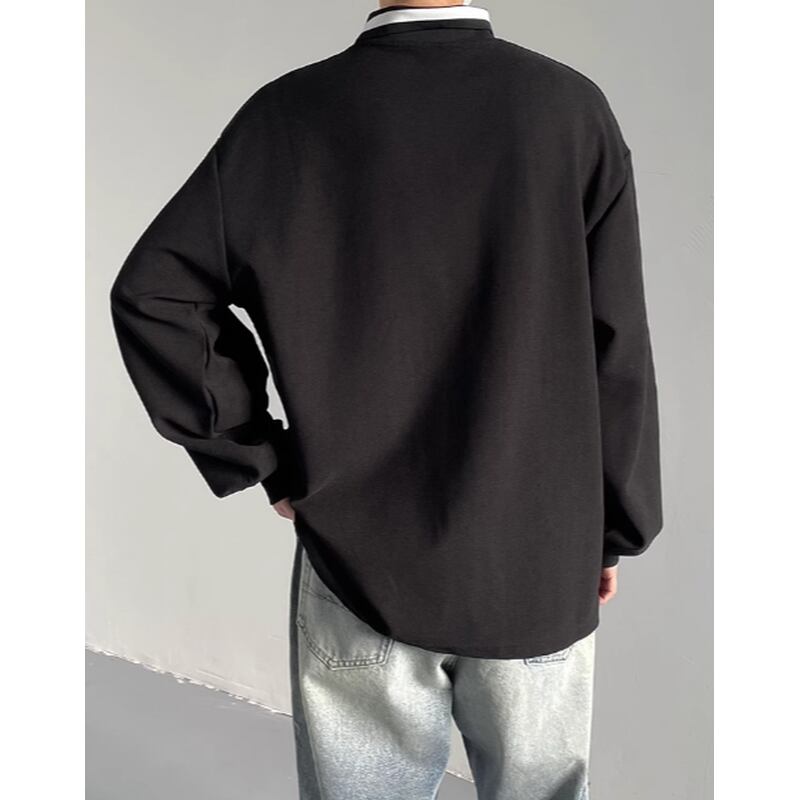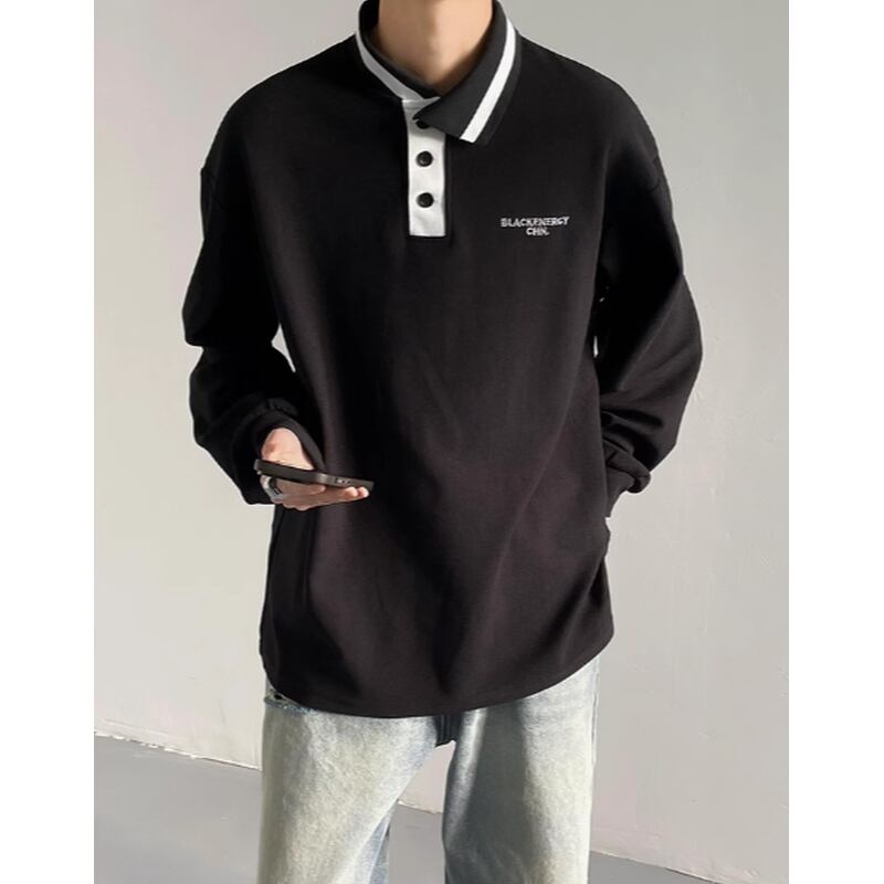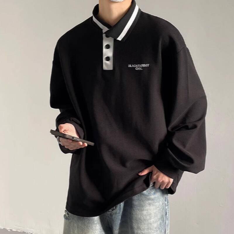 2-button two-border color oversized long sleeve polo shirt mr0660