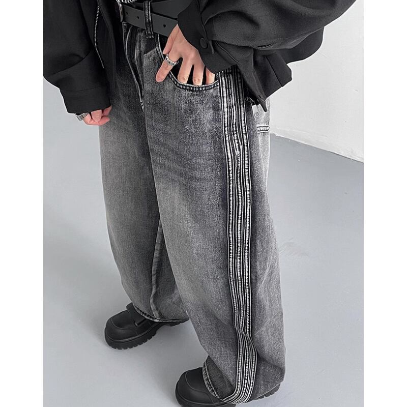 ワイドレッグのストレートシルエットが特徴的なデニムパンツ。サイドに施された細かなラインが、さりげなく個性を演出します。カジュアルなスタイルから、ジャケットを合わせたきれいめスタイルまで、幅広いコーディネートに合わせやすい万能アイテムです。普段使いはもちろん、特別な日の装いにも活躍してくれる、一着持っておきたいおすすめのパンツです。