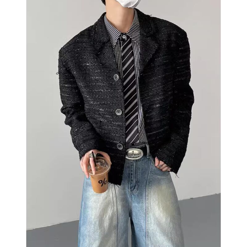 シングルブレストジャケットは、様々なスタイルに合わせやすい万能アイテムです。カジュアルな装いにも、フォーマルな場面にも対応でき、着こなしの幅が広がります。ボタンを留めてジャケットとして着用したり、羽織として着こなしたりと、その日の気分に合わせてアレンジできます。普段使いはもちろん、特別な日の装いにも活躍します。