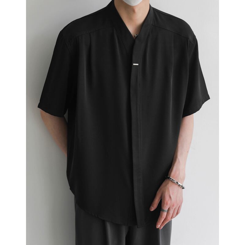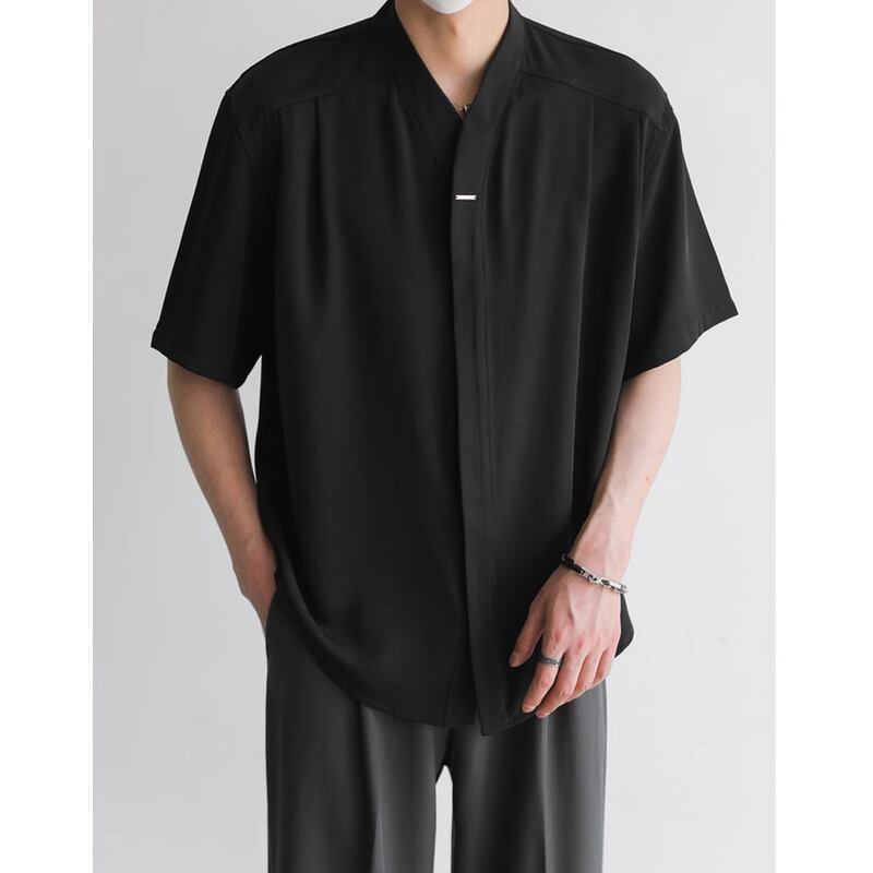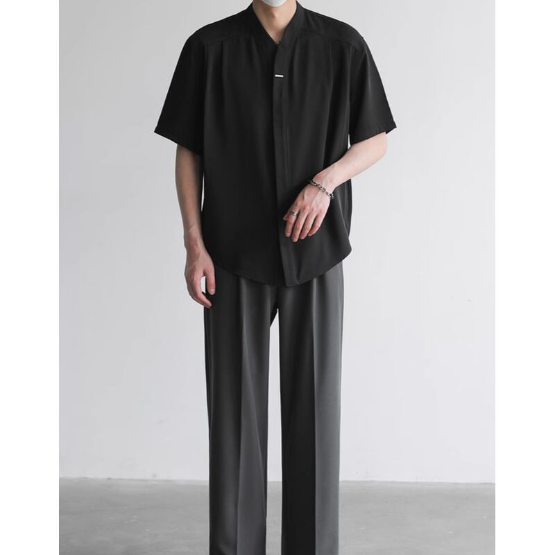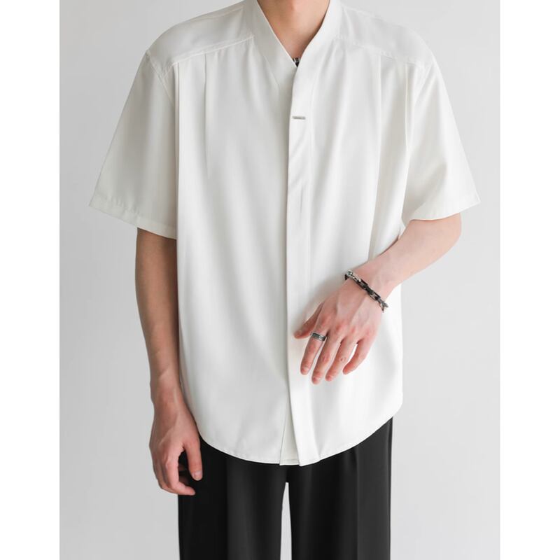 シンプルで洗練されたデザインが魅力の半袖シャツ。バンドカラーと比翼仕立てのミニマルなデザインは、どんなスタイルにも合わせやすく、上品な印象を与えます。ストレートシルエットで、着心地も抜群。カジュアルからフォーマルまで幅広いシーンで活躍してくれる、ワードローブに欠かせない一着です。