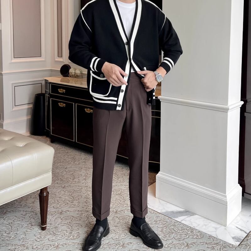 パイピングがポイントのVネックニットカーディガン。カジュアルすぎず、きれいめにも着こなせる万能アイテムです。ベーシックなカラーなので、ボトムスを選ばず、様々なコーディネートに合わせやすいのも魅力です。着心地も良く、リラックスした時間を過ごしたい時にもおすすめです。