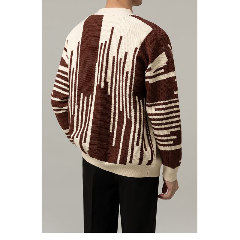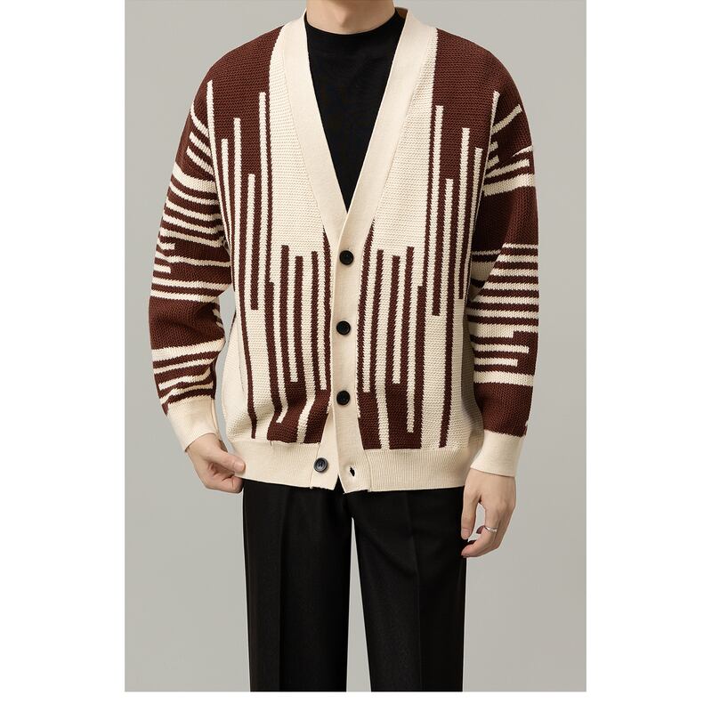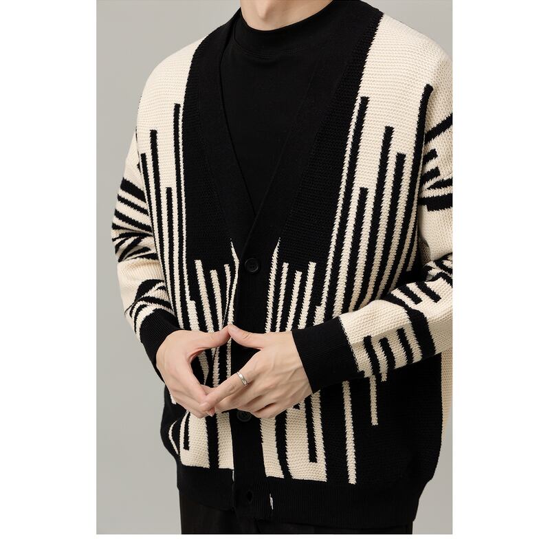 stripe pattern knit cardigan v-neck buttoned long sleeve mr0084