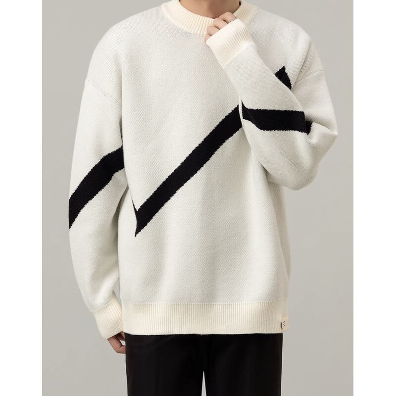 bicolor oversized crew neck long sleeve knit sweater mr0088