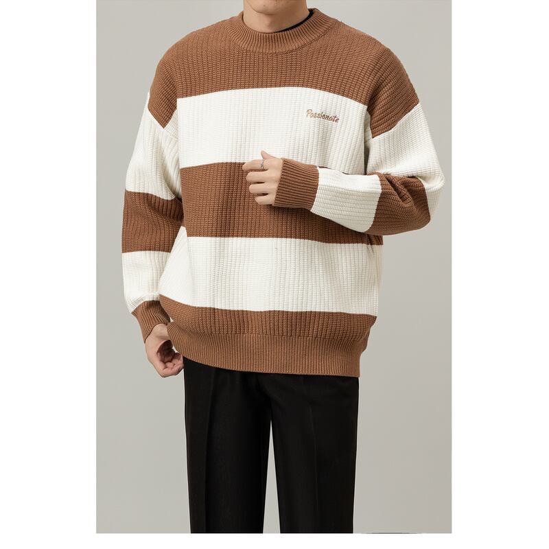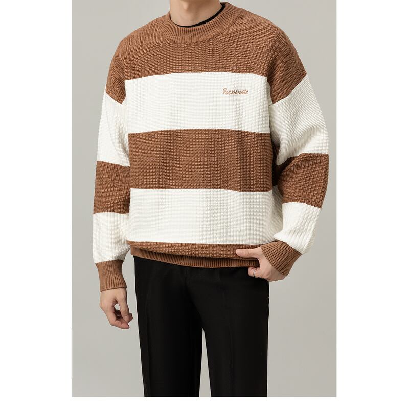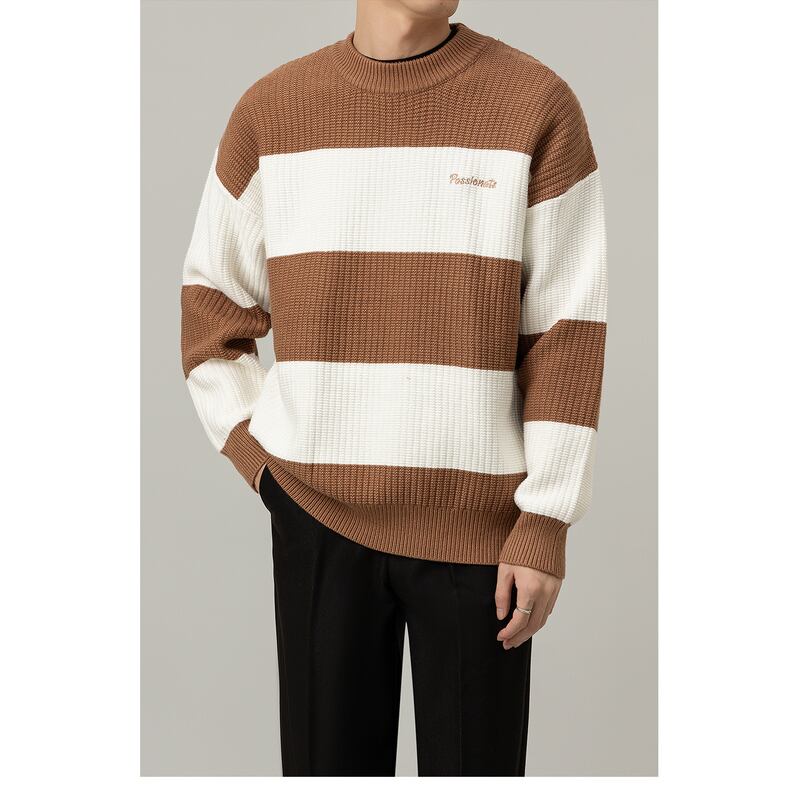 border pattern knit sweater crew neck long sleeve mr0093