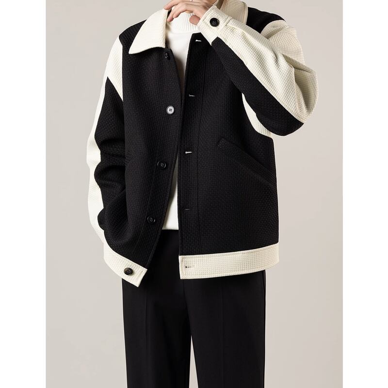 上品な雰囲気とモダンなデザインを兼ね備えたジャケット。ブラックとオフホワイトのツートーンカラーが、スタイリッシュながらも落ち着いた印象を与えます。ややゆったりとしたシルエットで、リラックスした着心地ながら、シャープな印象も演出できます。様々なコーディネートに合わせやすく、デイリーから特別な日まで活躍します。