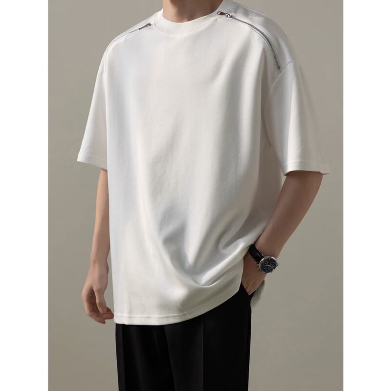shoulder fastener design short sleeve box silhouette t-shirt mr0100
